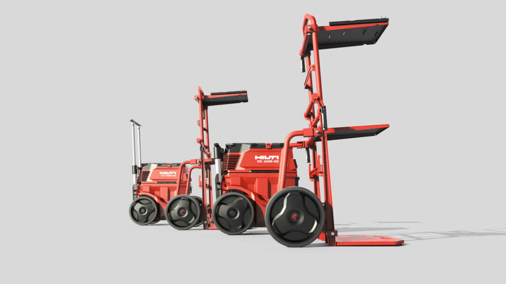 Next to the iconic case, we also worked on several other items—all bonded by the same high standards of sustainability and usability. Worth mentioning here is the universal-trolley for the transporting tools and equipment on the construction site and the range of compact universal vacuum cleaners with automatic filter cleaning for dry and wet vacuuming.